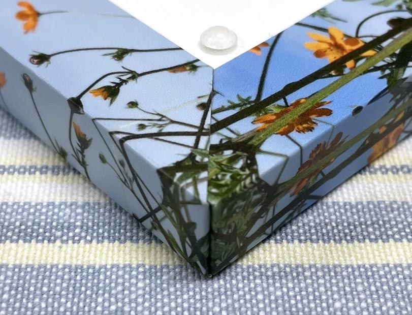 縦横比率合わせ(正方形)データでもOK ですが周囲が側面になること考慮ください。 - 側面幅の角部分はパネル内に隠れます。