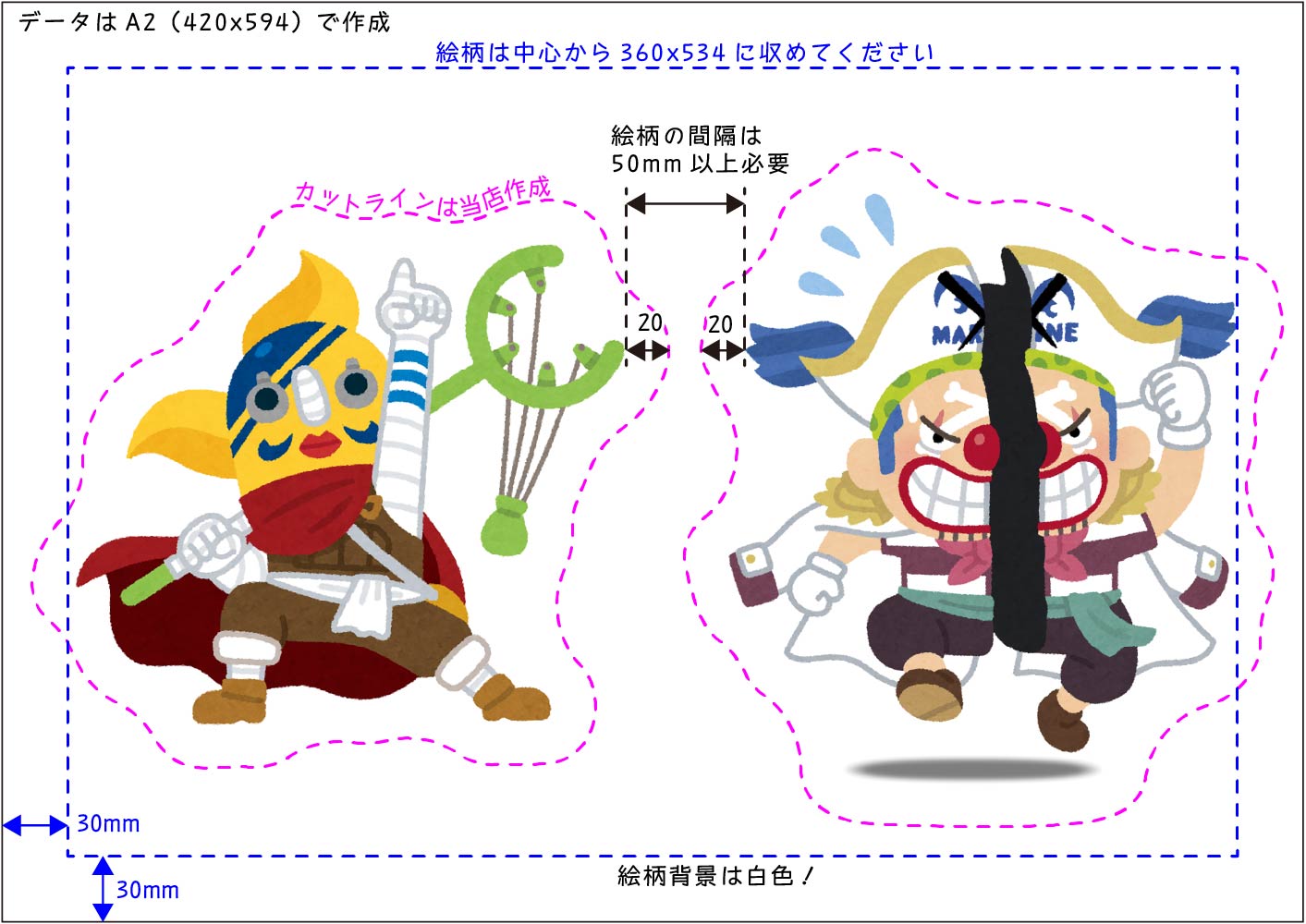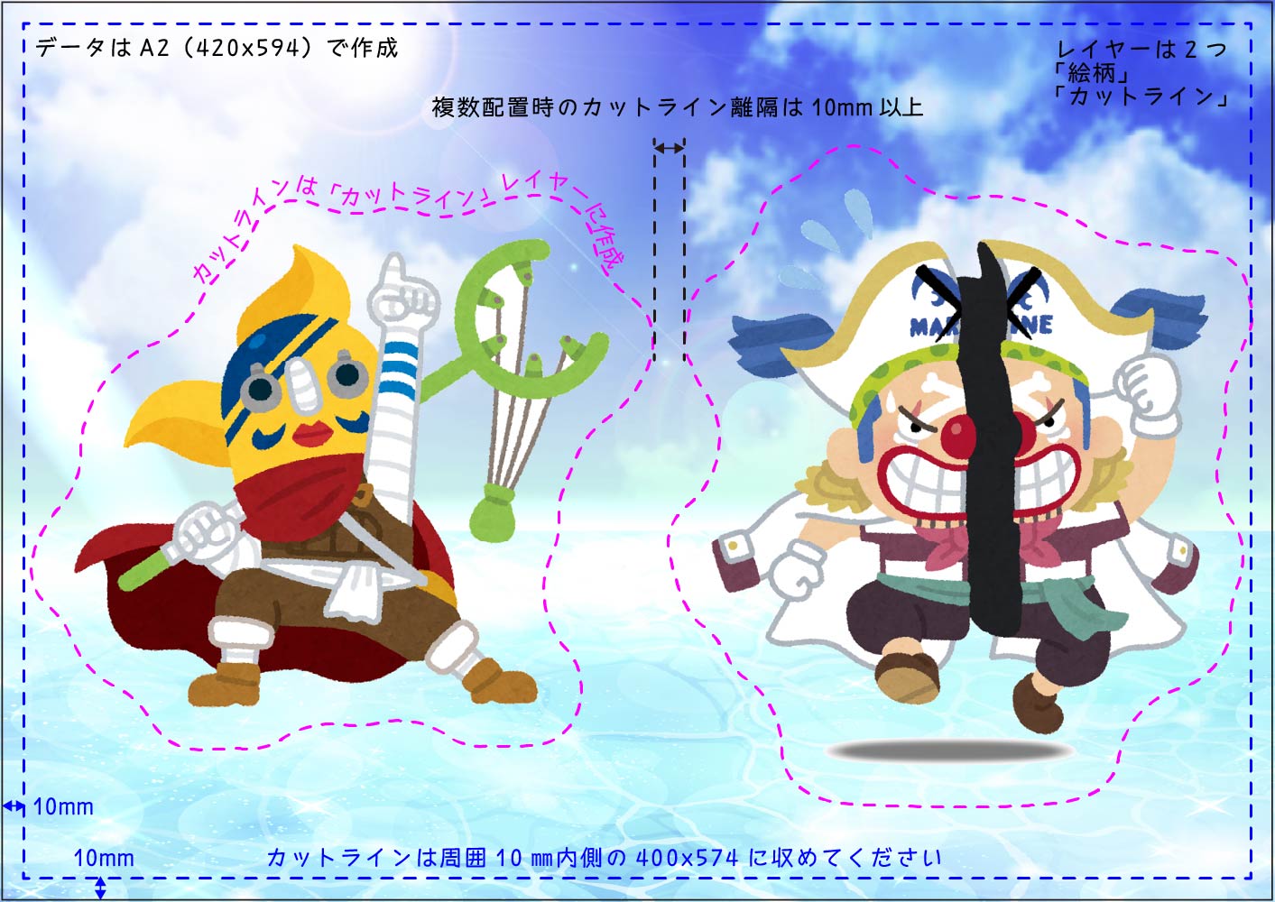 絵柄から約2㎝外側に縁取りカットラインを当店作成