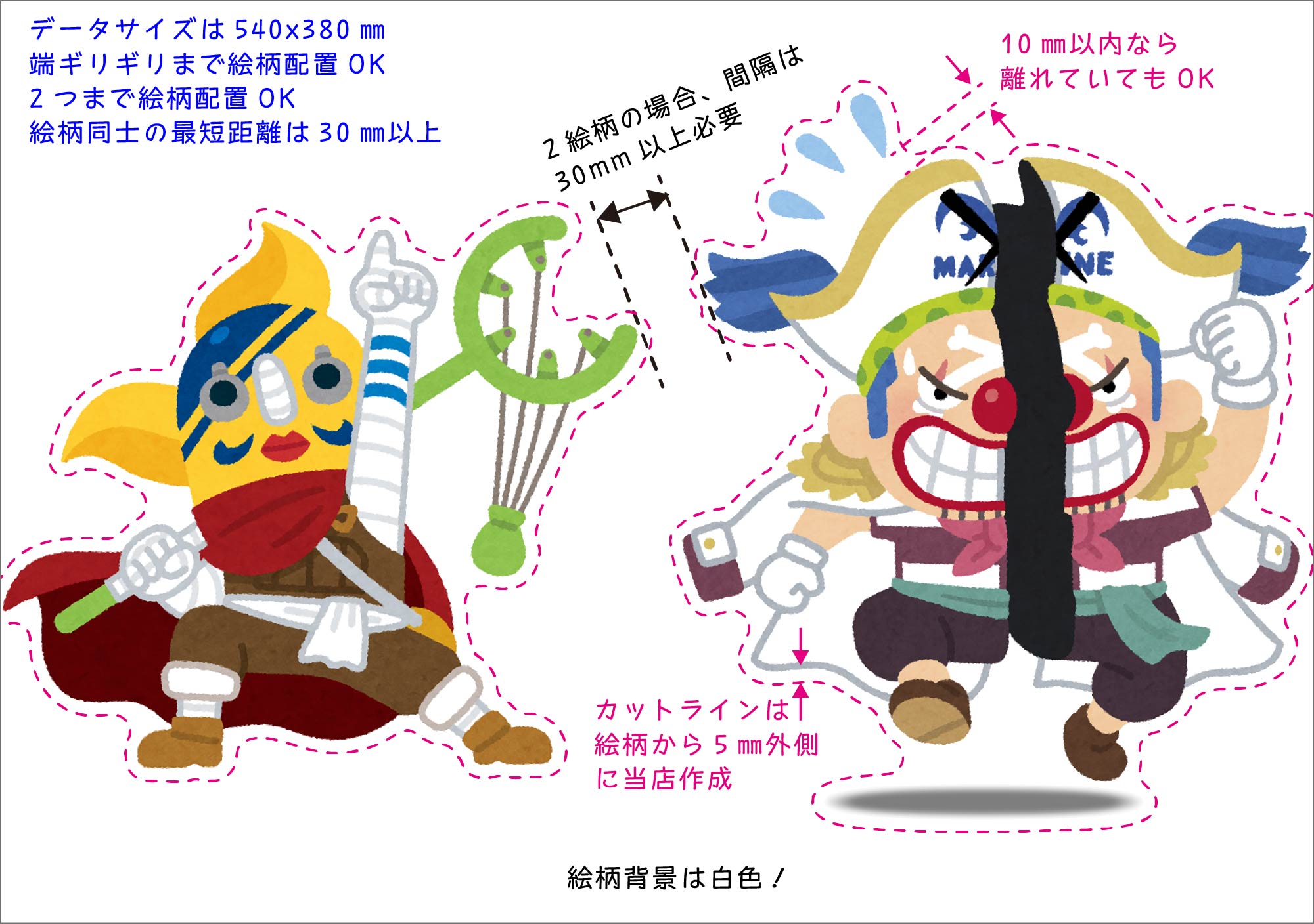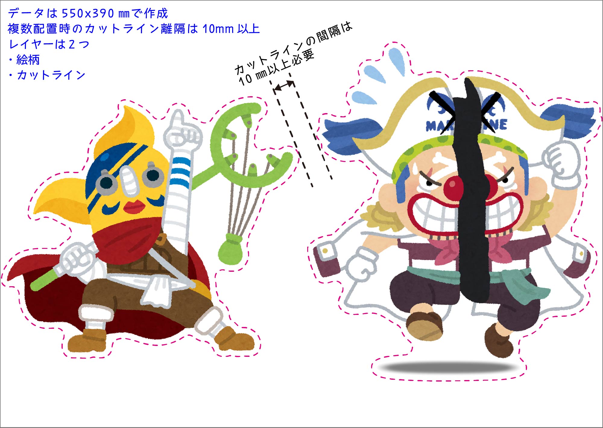 複数絵柄配置OKですが各カットラインは10㎜以上離す